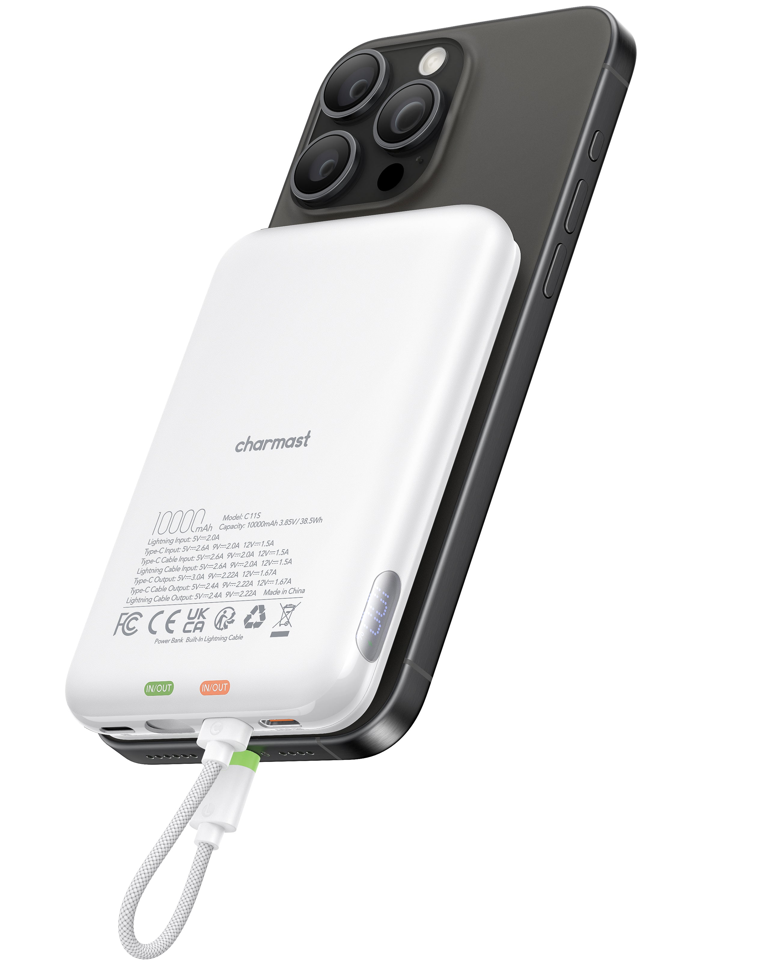 Charmast 10000mAh Slim 20W Power Bank with Removeable Cable & Display
