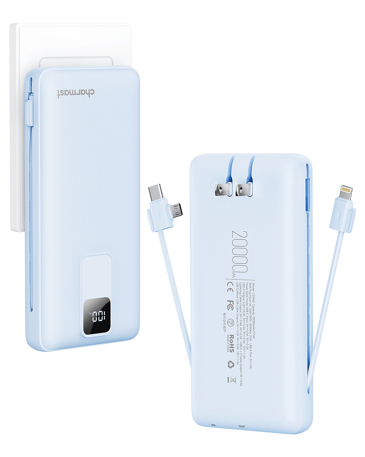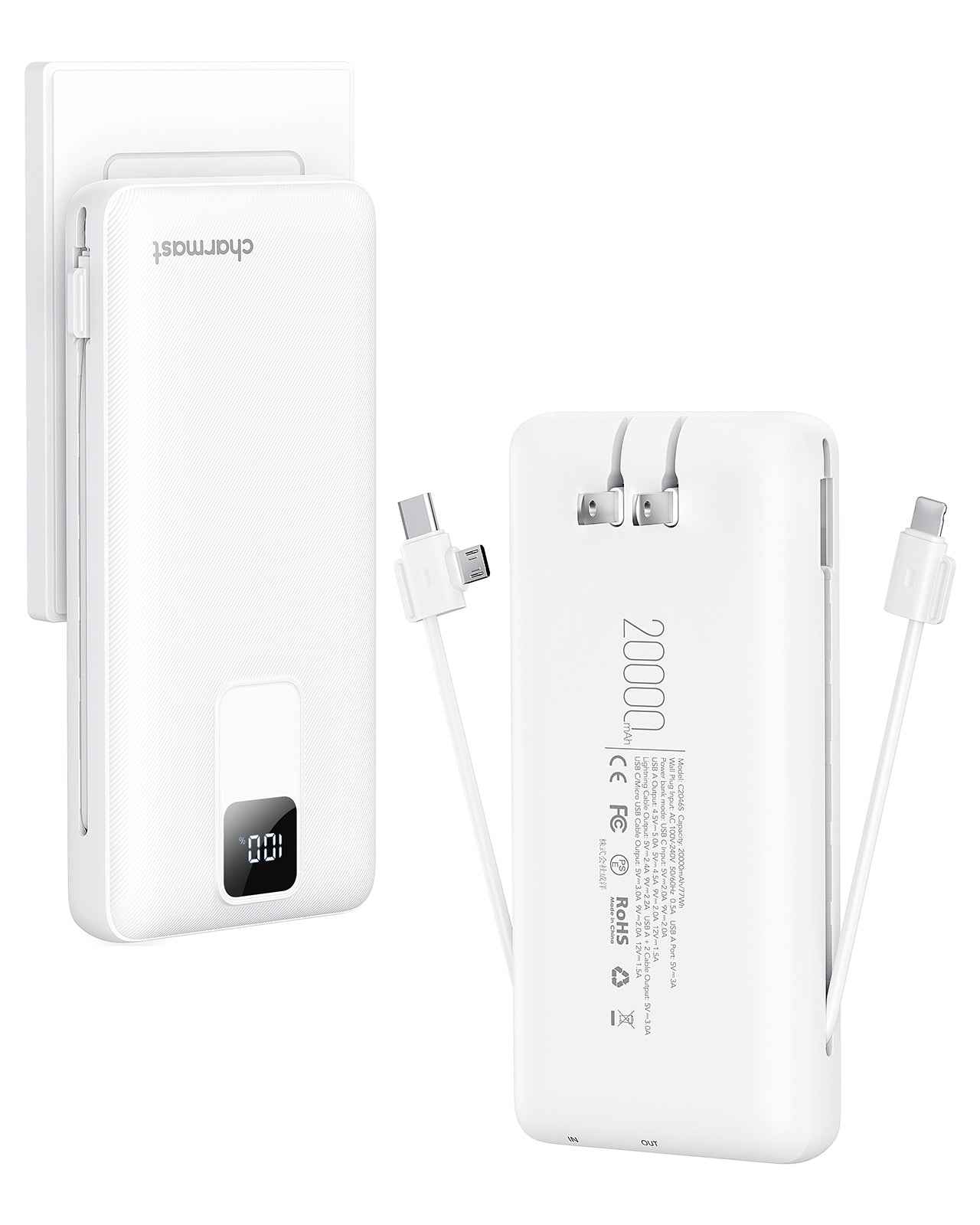 Charmast 20000mAh Portable Charger with Built-in Cables and Wall Plug
