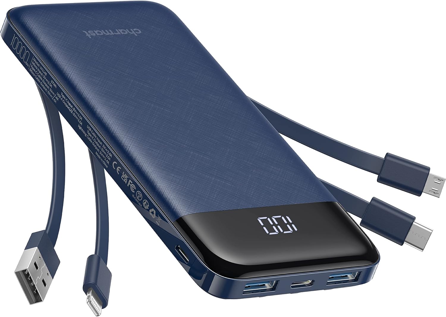 Charmast 10000mAh Built-in Cables | Ultra Slim | LED Display Power Bank